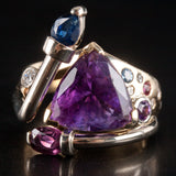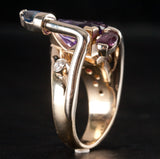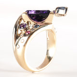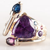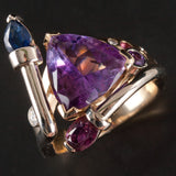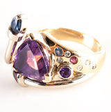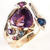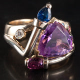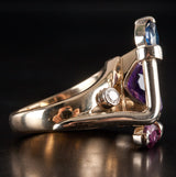 14k Yellow Gold Amethyst Sapphire Ruby Aquamarine Diamond Abstract Ring 5.45ctw