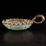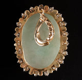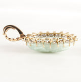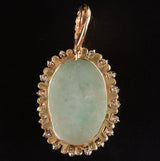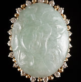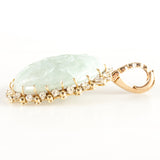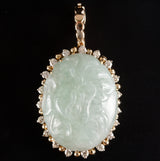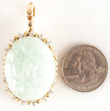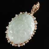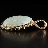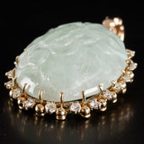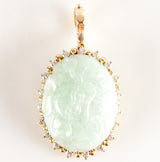 14k Yellow Gold Carved Oval Jade Halo Pendant W/ Diamond Accents 1.14ctw 22.67g
