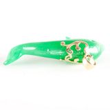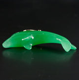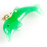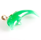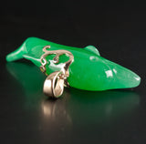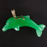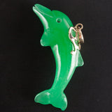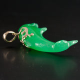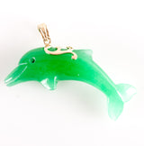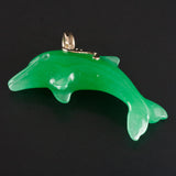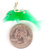 14k Yellow Gold Dolphin Shaped Jade Dangle Pendant 6.75g 42mm x 21.6mm