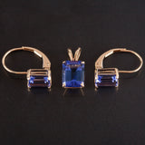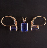 14k Yellow Gold Emerald Shaped Tanzanite Earring Pendant Set 3.75ctw 2.57g