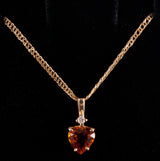 14k Yellow Gold Orange Heart Citrine Diamond Necklace W/ 18" Chain .685ctw