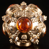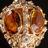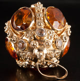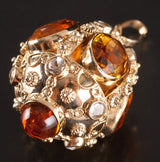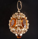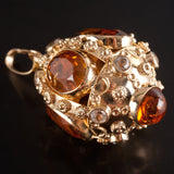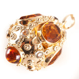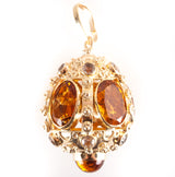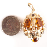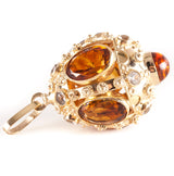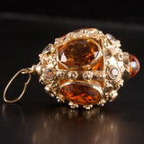 14k Yellow Gold Orange Oval Citrine White Sapphire Watch Fob / Pendant 33.45ctw
