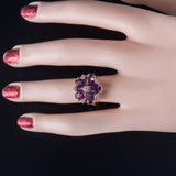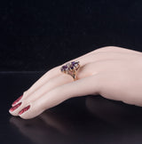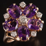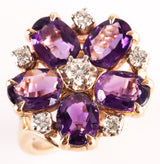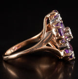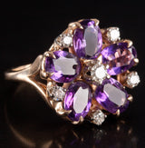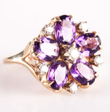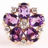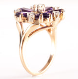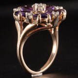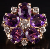 14k Yellow Gold Oval Amethyst Round Diamond Floral Cocktail Ring 2.79ctw 5.7g