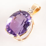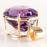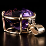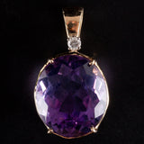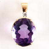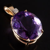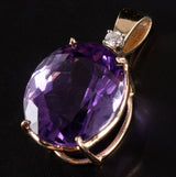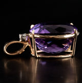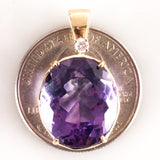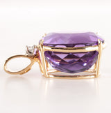 14k Yellow Gold Oval Amethyst Solitaire Pendant W/ Diamond Accent 12.79ctw 4.85g
