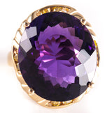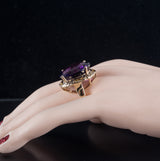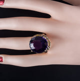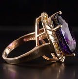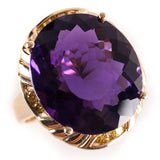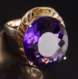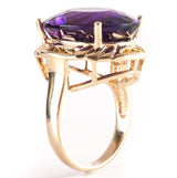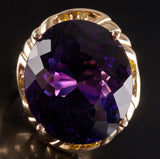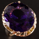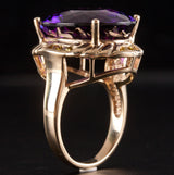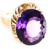 14k Yellow Gold Oval Amethyst Solitaire Ring W/ Yellow Diamond Accents 20.78ctw