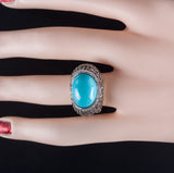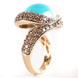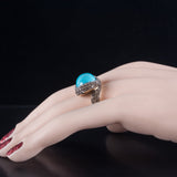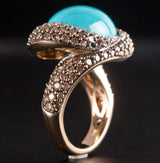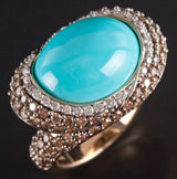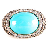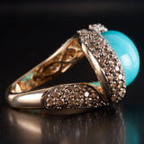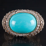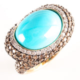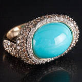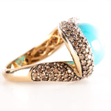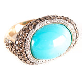 14k Yellow Gold Oval Cabochon Turquoise Diamond Halo Cocktail Ring 1.145ctw