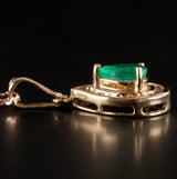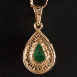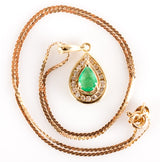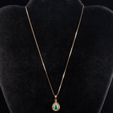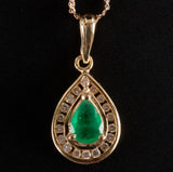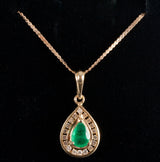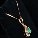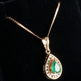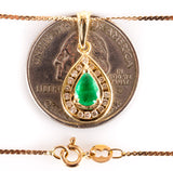 14k Yellow Gold Pear Emerald Diamond Halo Style Necklace W/ 13.75" Chain .77ctw