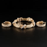 14k Yellow White Gold Round Diamond Bracelet & Hoop Earring Set 2.71ctw 64.26g