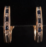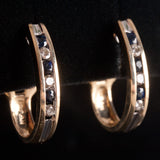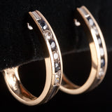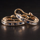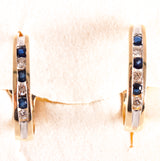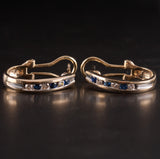14k Yellow White Gold Round Sapphire Diamond Huggie Earrings .42ctw 4.05g
