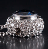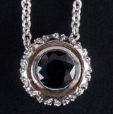 18k White Gold Round Sapphire & Diamond Necklace W/ 16" Chain 1.32ctw 5.59g