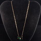 18k Yellow Gold AA Tsavorite Garnet Enamel Hummingbird Necklace W/ 19.5" Chain