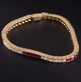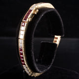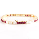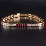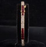 18k Yellow Gold Lab-Created Ruby Natural Diamond Tennis Bracelet 12.05ctw 32.5g