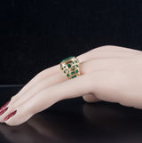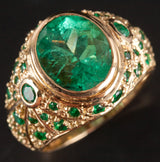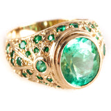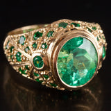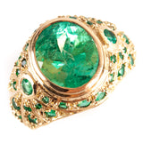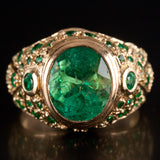18k Yellow Gold Oval Round Emerald Cluster Cocktail Ring 5.36ctw 10.65g