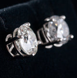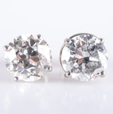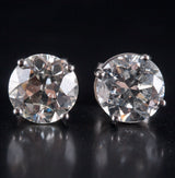 950 Platinum Old Euro Diamond Solitaire Stud Earrings W/ Butterfly Backs 3.71ctw