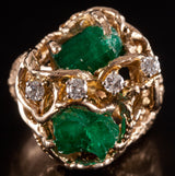 9k Yellow Gold Rough Emerald Round Diamond Cocktail Style Ring .24ctw 12.95g