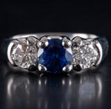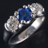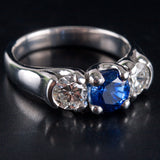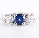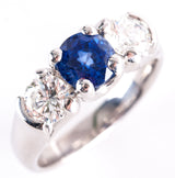 Platinum Round Sapphire Diamond Three-Stone Style Engagement Ring 2.16ctw 10.02g