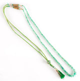 Round Button Emerald Graduated Style Necklace W/ 36"-20" Adjustable Cord 46.2ctw