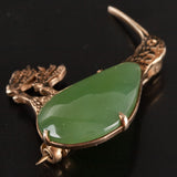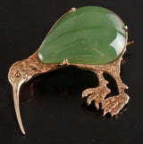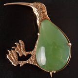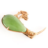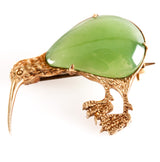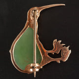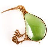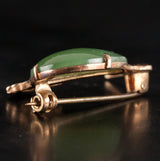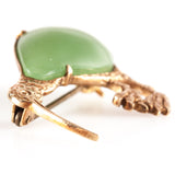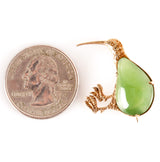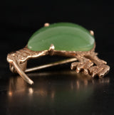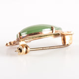 Vintage 1920s 9k Yellow Gold Jade Kiwi Style Pin Brooch 3.7g