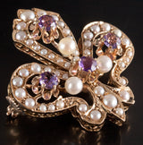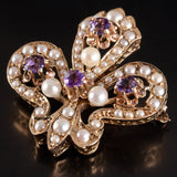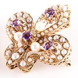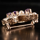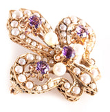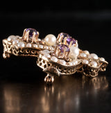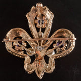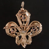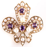 Vintage 1930's 10k Yellow Gold Amethyst Pearl Fleur-De-Lis Brooch Pendant Combo