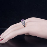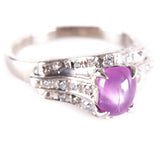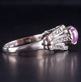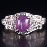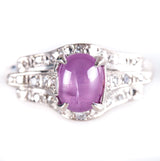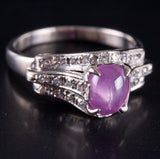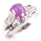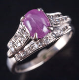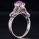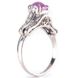 Vintage 1930's 18k White Gold Cabochon Pink Star Sapphire Diamond Ring 1.21ctw