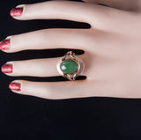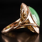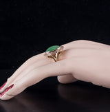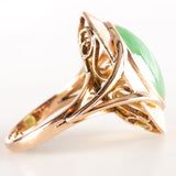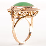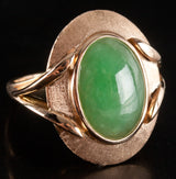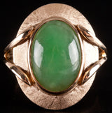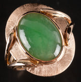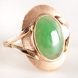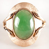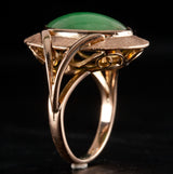 Vintage 1950's 14k Yellow Gold Oval Cabochon Jade Solitaire Cocktail Ring 6.5g