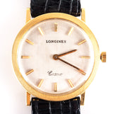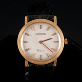 Vintage 1960s 18k Yellow Gold Longines Cosmo Wrist Watch W/ Leather Band