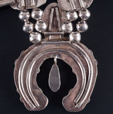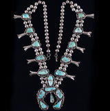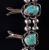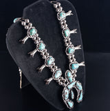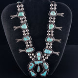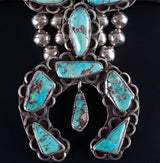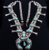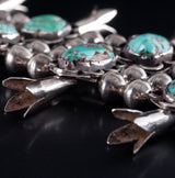 Vintage 1960's Sterling Silver Cabochon Turquoise Squash Blossom Necklace 161.1g